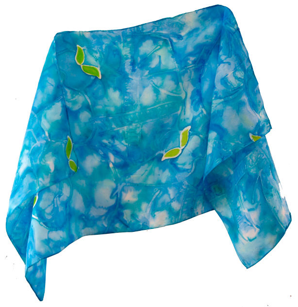 Silk painting artwork "Shawl Zapata Aqua"